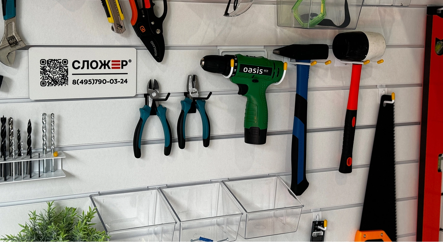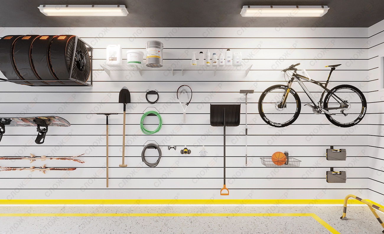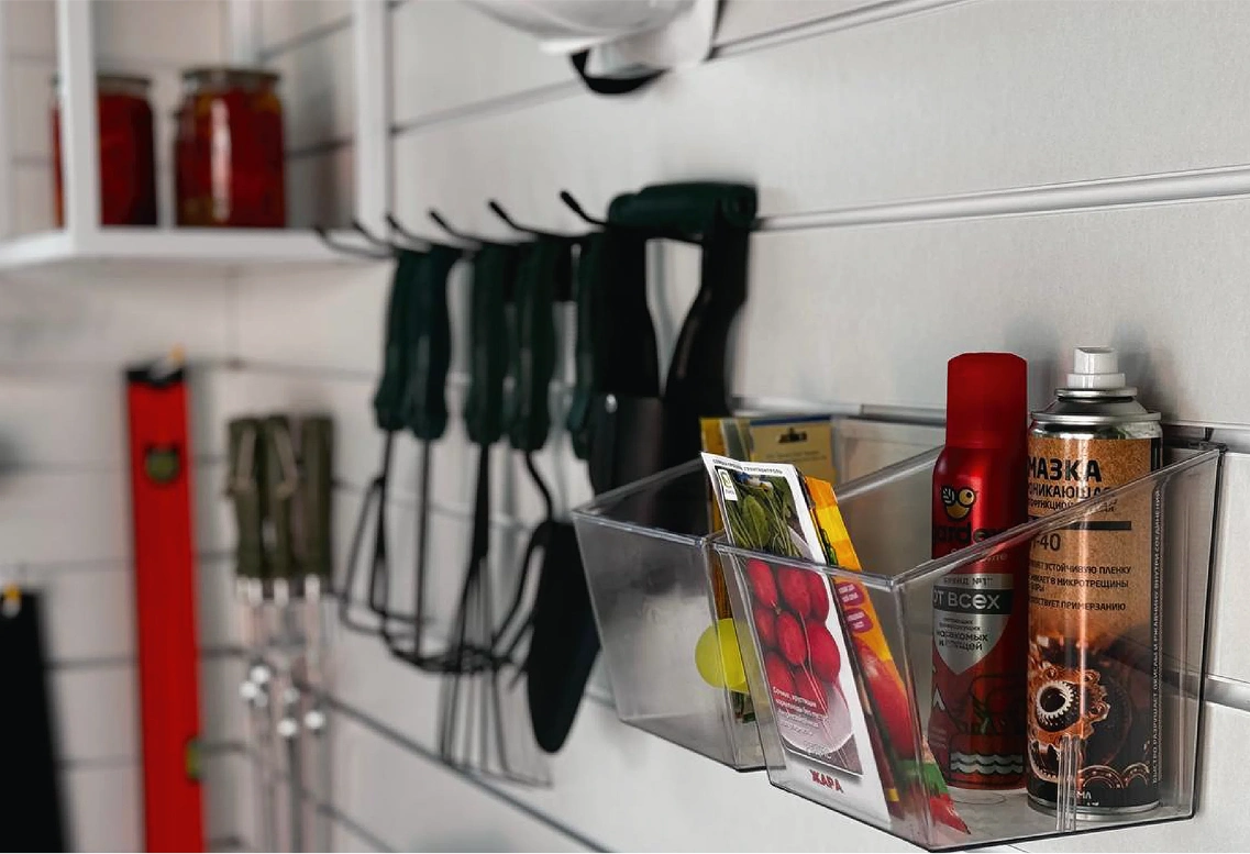Универсальность системы заключается в её способности адаптироваться к различным помещениям и задачам. Будь то гараж, детская комната, мастерская, хобби-центр, кладовая или гардеробная – система позволяет эффективно организовать пространство в любом из этих мест. Благодаря множеству аксессуаров и легкости трансформации, подходит для хранения самых разных предметов, от инструментов и игрушек до одежды и хобби-материалов.